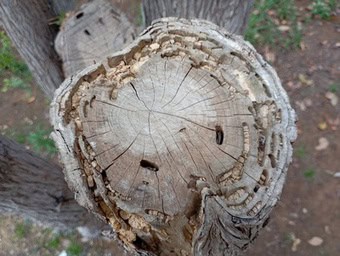 If we watch carefully one of this pieces we’ll see a central darkest spot which is the core of the log and around it , concentric rings .